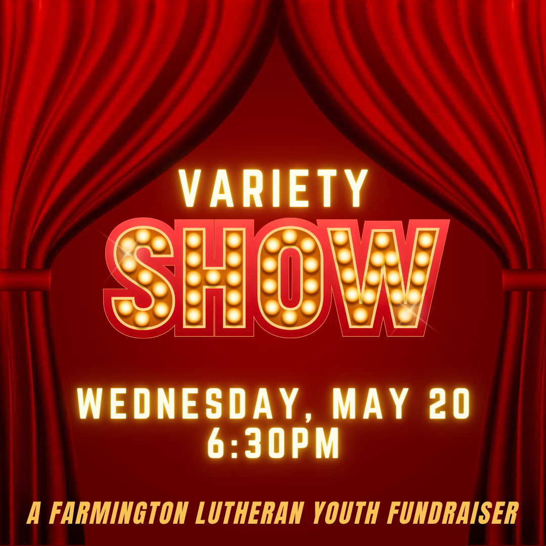 Ready to have some fun and show off your talents? Take part in this year’s FLC Variety Show! Rehearsal will take place on May 13 at 6:00pm. Then on May 20, kick off the evening with a bake sale at 6:00 followed by the show at 6:30 PM. Want in on the fun? Email Karissa@farmingtonlutheran.com to get signed up!